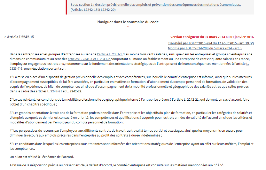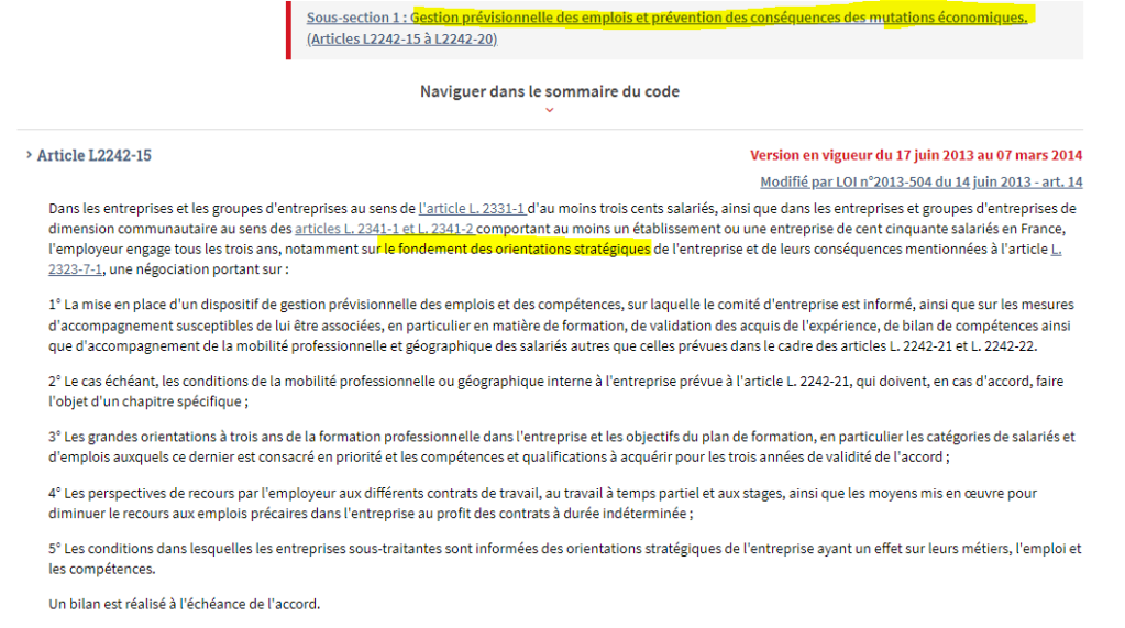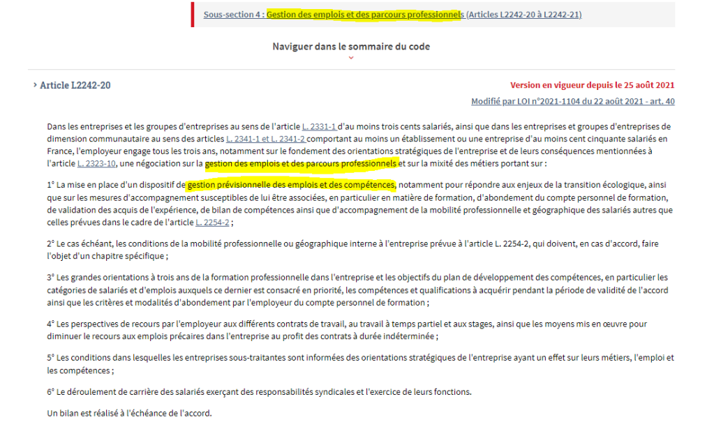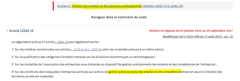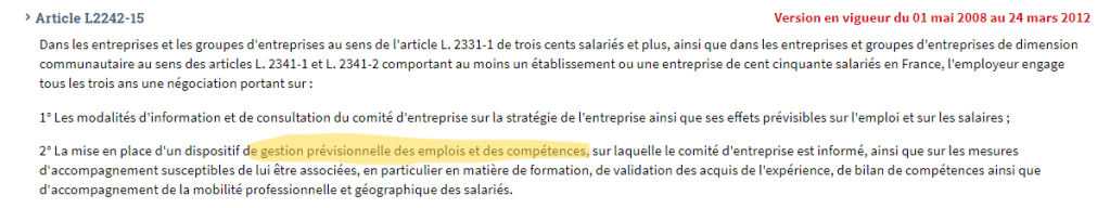 - Article L2242-15 Alinéa 4 : gestion prévisionnelle des emplois et des compétences